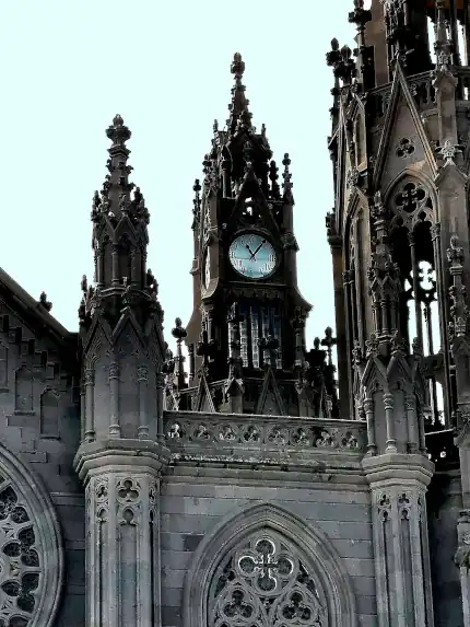 A neo-gothic style was chosen, since it allowed for great ornamental displays on the stone to be engraved by local stone quarry workers, the traditional local trade. The proud presence of its four towers gives the church a sensation of grandeur, characteristic of buildings of the style, leading it to be popularly known as Arucas Cathedral.