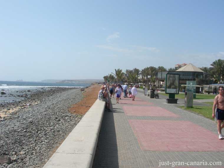 The area consists of a main beach, and rocky coves backed by low cliffs. The much larger beach of Maspalomas is only next door, just past the lighthouse . A promenade runs the length of the resort.