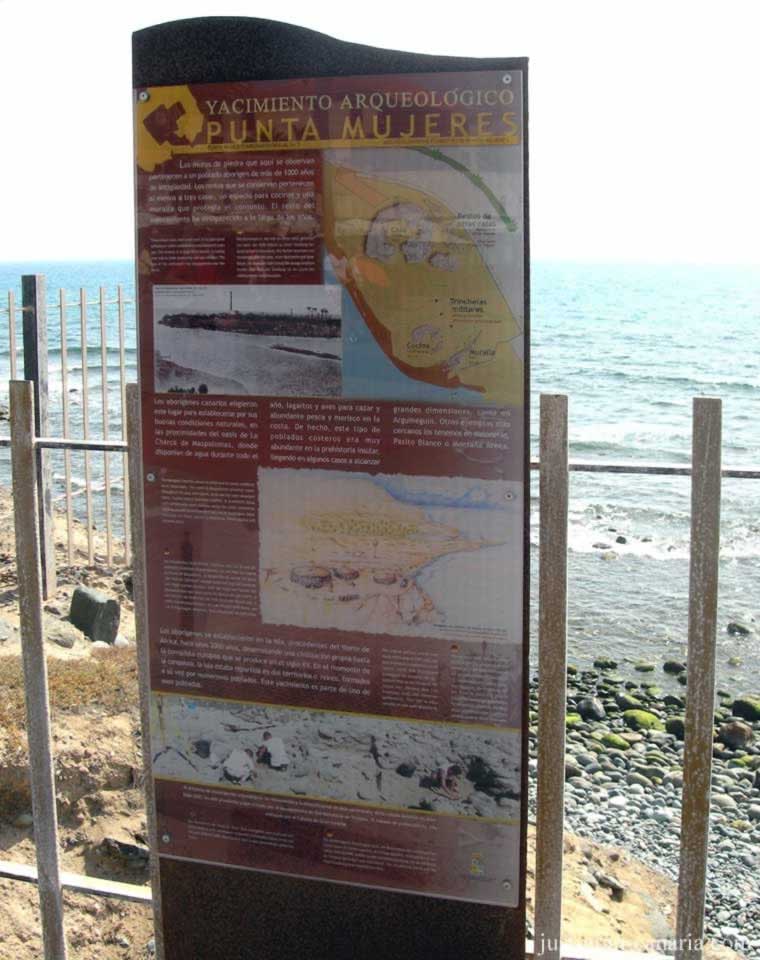 The Punta Mujeres ArcheologicalĀ Ruins are located on the sea front of Melononeras between the promenade and cliff top almost infront of the Varadero Shopping centre. There is not a lot to see but you can make out the foundations and a foot or so of a circular structure.