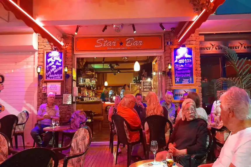 The Barbacoa is a vast complex of entertainment and Bars & one of the best venue to take your kids too with a playground to keep them happy. There are also sports fields, giant outdoor sports screens The Show. Bar is one of the top show bars in Puerto Rico and the shows are free., also popular for English, Scottish & Scandinavian breakfasts from 8am and evening live show lasting 4 hours that is well worth seeing.